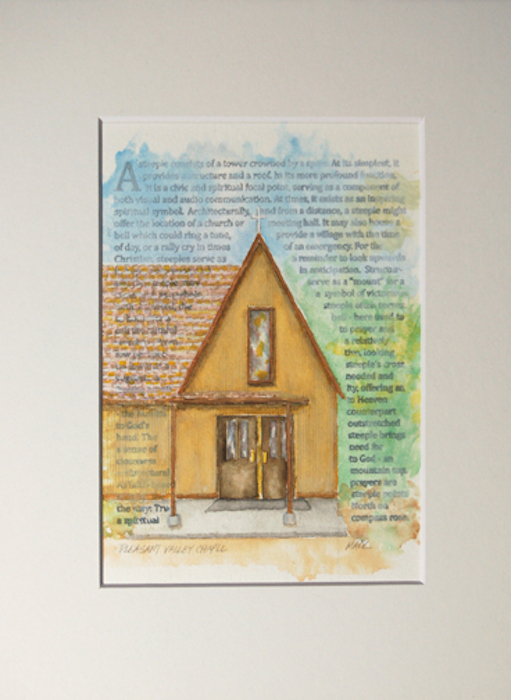 So, about 41 years ago, my sweetheart and I were married in a little country chapel in California’s great valley. For her Christmas present, I decided to paint it for her.