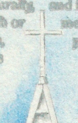 Been working this one for a few days. Its inspiration is a church out in the country, very pretty setting surrounded by flower fields and farms. Aside from the beauty and stature of this church, what caught my eye was something on the on the little cross atop the steeple. Upon closer scrutiny, I found that it is a crown – how cool! Not sure I’ve seen that before, though I feel I may have seen a cross with a crown hung over the top vertical, sitting on the horizontal cross bar … vague memory though …. I wonder if the crown began up on the crosspiece, and has somehow slid or was blown down (we get some stiff winds here), past its intended spot, onto the lower vertical. ?? The mystery is well with my soul: either way, I appreciate the symbolism and message of the cross on the crown.